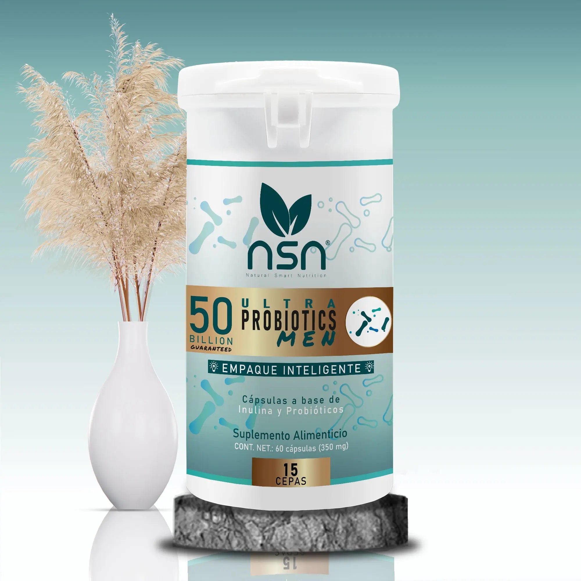 Ultra Probiotics Men, contiene 50 billones de probióticos con 16 cepas bacterianas que se encuentran naturalmente en el cuerpo masculino, al consumir probióticos para hombre ayudas a restaurar y aumentar la flora intestinal de estos probióticos beneficiosos para el bienestar masculino. Te contamos que el viaje de los probióticos desde la boca al estómago y después hasta el intestino, es largo, en el camino muchos de estos probióticos se pierden, mueren o se desintegran en los ácidos del estómago. Por eso, es recomendable consumir un probiótico de liberación retardada que soportará el pH de los ácidos estomacales, así más, probióticos vivos y funcionales lograrán llegar al intestino